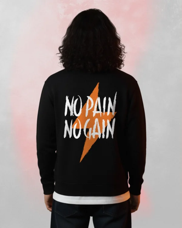 A comfortable motivational No Pain No Gain crewneck sweatshirt with a bold black print — shop now!